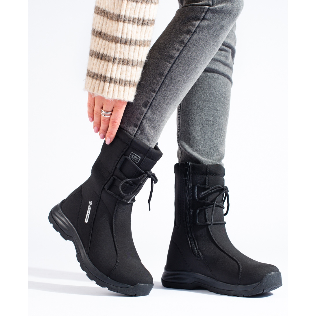 DK Sapatos de trekking de mulher com casaco de pele de carneiro DK preto