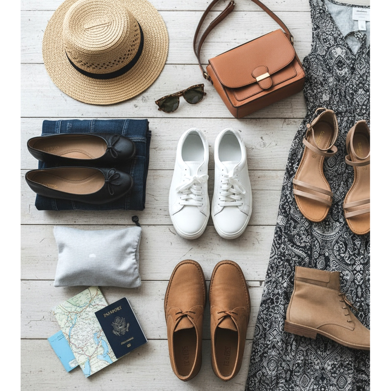 Arrumar os sapatos para uma viagem é um desafio que todos enfrentam. Por um lado queremos estar preparados para cada ocasião, por outro lado, o calçado ocupa muito espaço e é pesado. A chave do sucesso é um planejamento cuidadoso e uma seleção consciente de modelos que funcionarão em muitas situações.