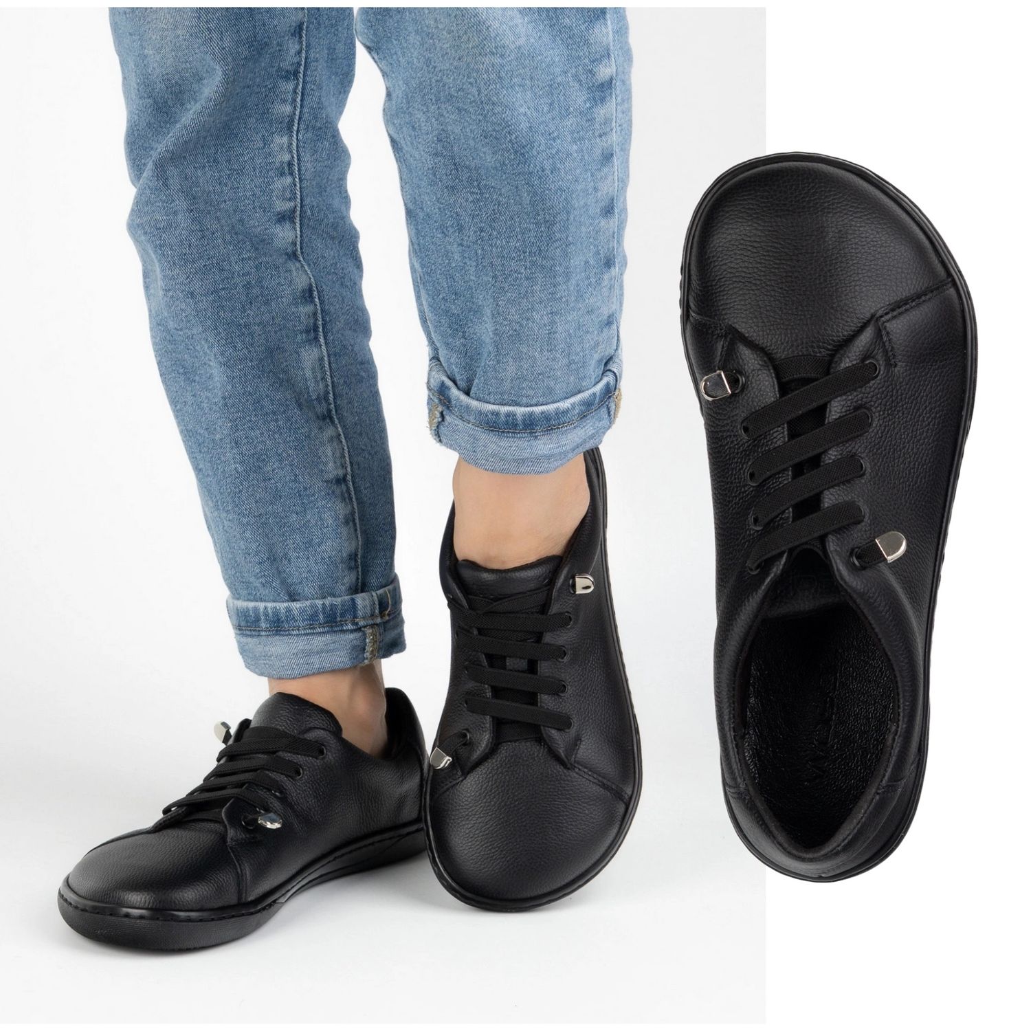 Detalhes: WASAK Sapatos descalços femininos couro minimalista 0771w ervilhas pretas preto