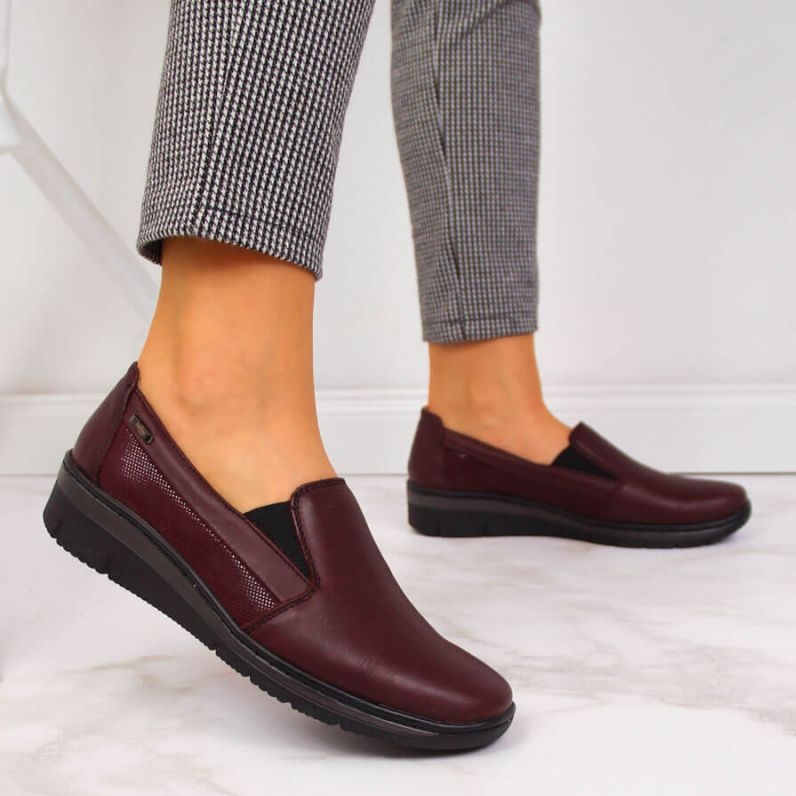 Detalhes: Sapatos deslizantes de couro Helios W H350L bordô vermelho multicolorido