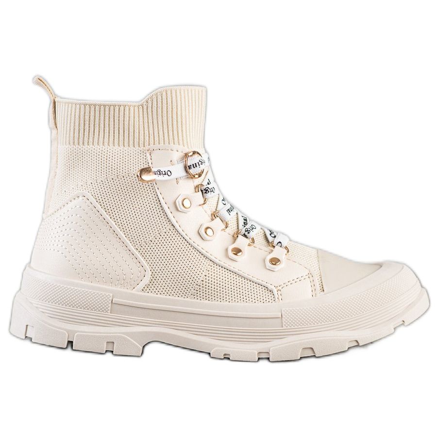 A parte superior do calçado é confeccionada em couro ecológico e materiais têxteis de alta qualidade, o que garante durabilidade e conforto de uso. Graças ao salto macio integrado, você poderá desfrutar de conforto o dia todo, seja na cidade ou em uma caminhada. A biqueira redonda mostra um estilo sutil e feminino, e a cor bege torna o calçado fácil de combinar com vários estilos.