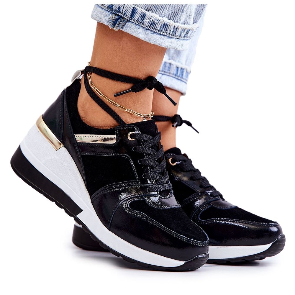 O Calçado Esportivo S.Barski Couro Cunha Preto e Branco Rayana é a escolha perfeita para mulheres que desejam aliar estilo com conforto. Estes tênis da moda foram cuidadosamente confeccionados a partir de uma combinação de couro natural envernizado e camurça, o que garante não só uma aparência estética, mas também durabilidade.