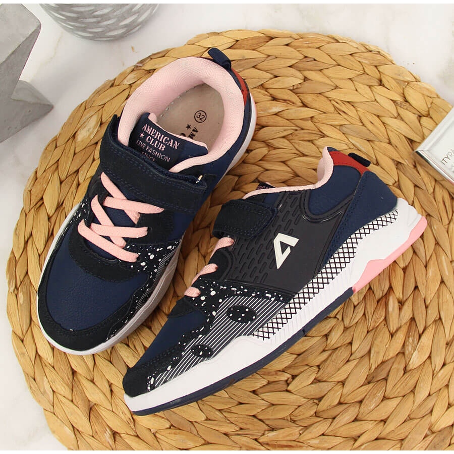 Sapatos desportivos de menina com velcro azul marinho American Club azul-marinho