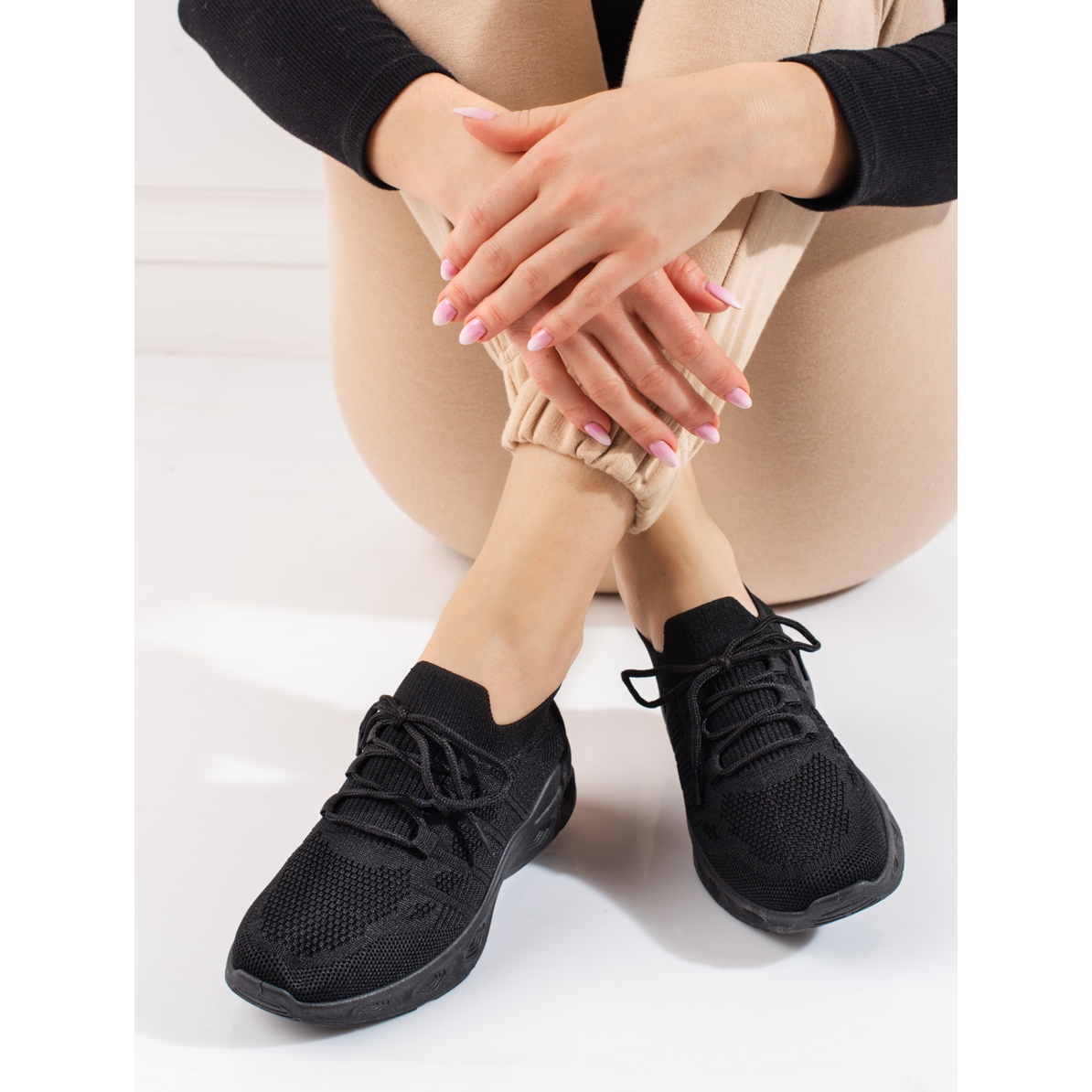Detalhes: Sapatos desportivos em tecido preto Shelovet