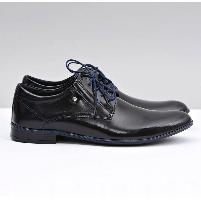 Descubra elegância e conforto com os sapatos Massimiliano de couro preto da KOMODO! Estes sapatos formais masculinos, feitos inteiramente de couro de alta qualidade, combinam design moderno com estilo clássico. A biqueira redonda e o salto plano de 2 cm de altura garantem conforto de uso, o que os torna a escolha ideal para ocasiões importantes e celebrações.