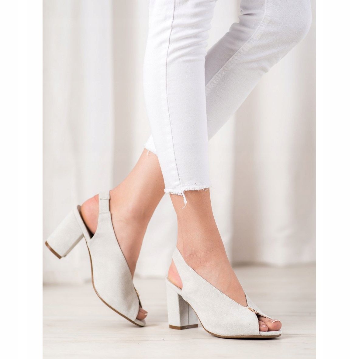 O calçado tem design clássico com salto aberto e confortável salto de 8,5 cm, que garante estabilidade e conforto no uso. Confeccionados em couro camurça ecológico, caracterizam-se por uma sola plástica lisa, o que os torna a escolha ideal para os dias de primavera e verão. O fecho com fivela permite fácil ajuste ao pé, o que aumenta ainda mais o conforto de uso.