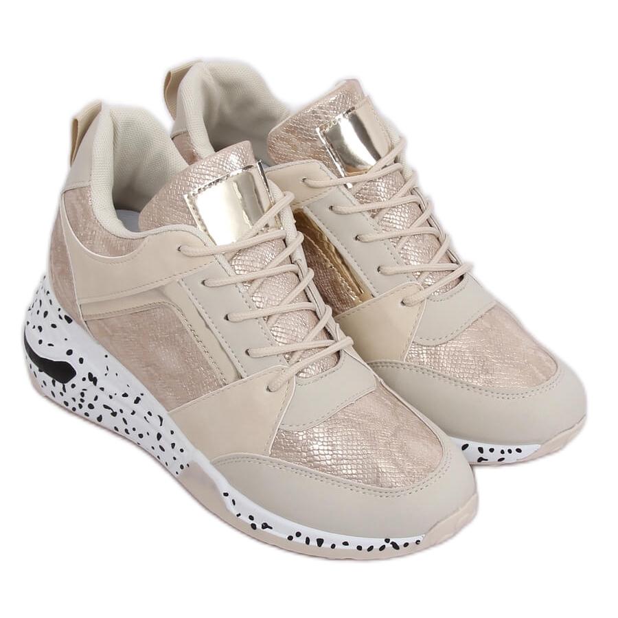 **Calçado esportivo com cunha bege e dourada C131 Beis**