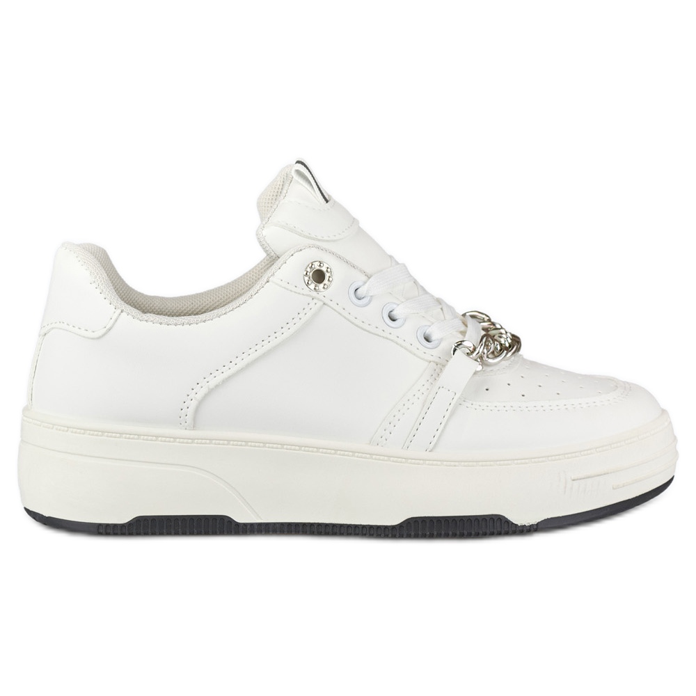 Detalhes: Sapatos esportivos brancos com uma corrente