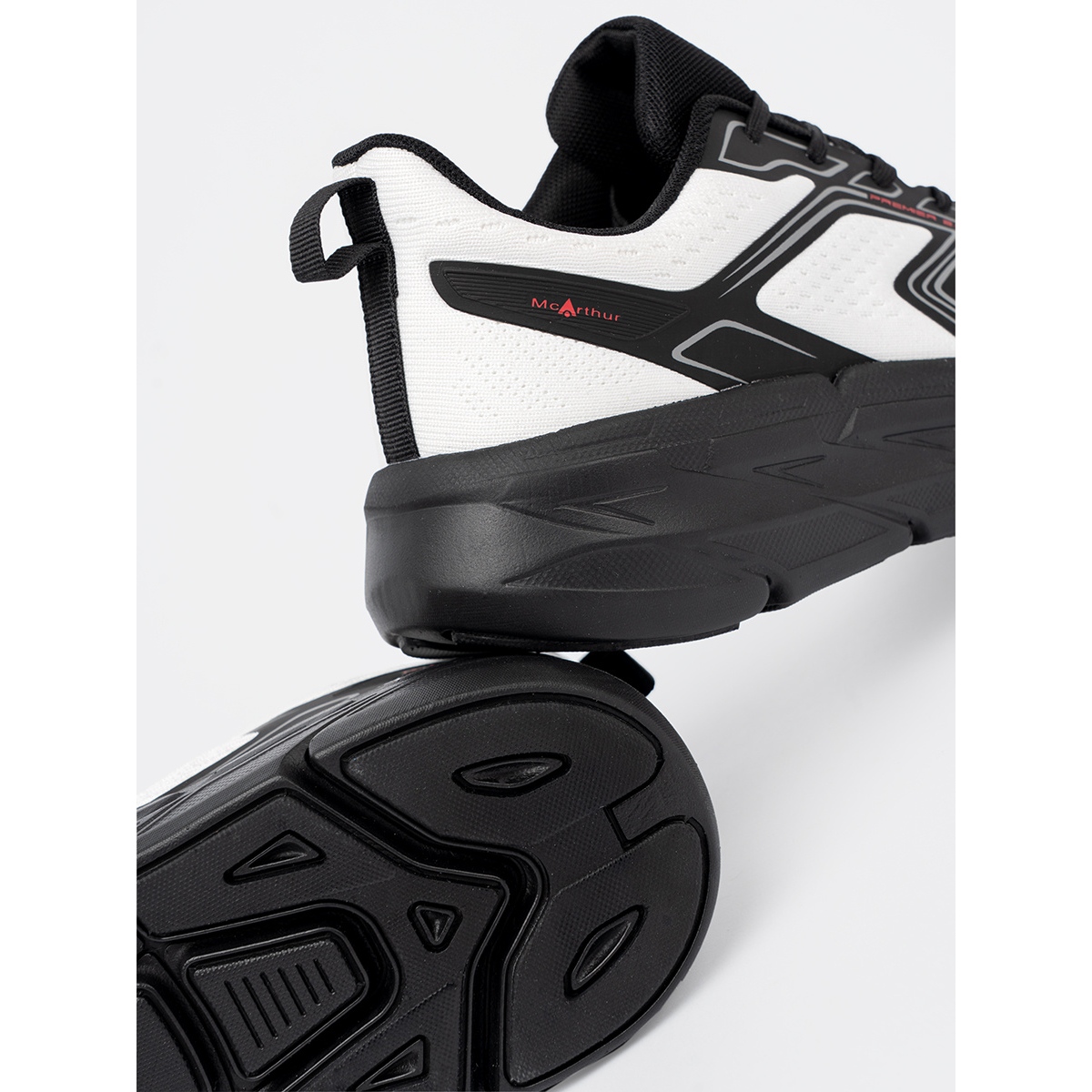Detalhes: Shelvt Sapatos esportivos brancos e pretos confortáveis com uma estrutura de malha McArthur