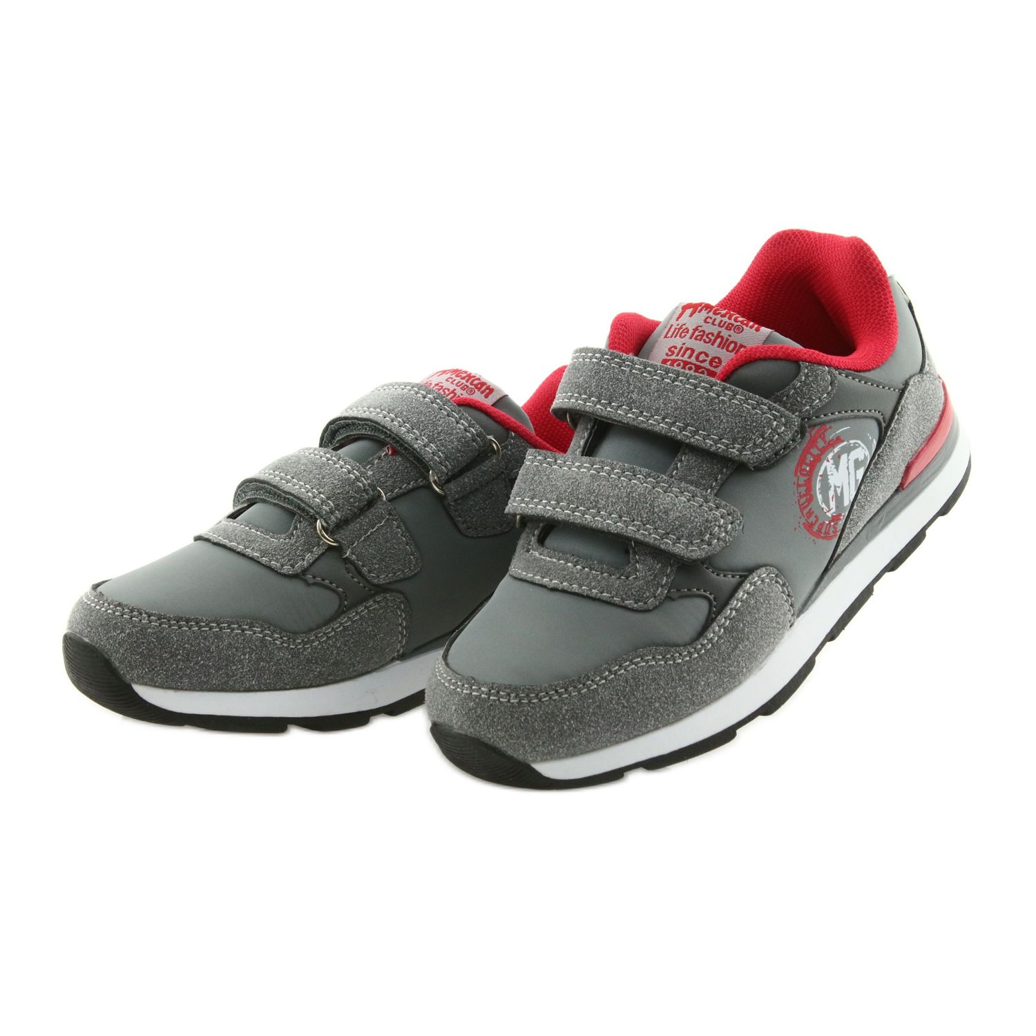 Uma interessante combinação de elementos cinza com vermelho e um design moderno vão atrair a atenção de todos os meninos. O ajuste perfeito e o salto rígido influenciam adicionalmente a ergonomia do calçado, importante para o desenvolvimento saudável dos pés da criança.