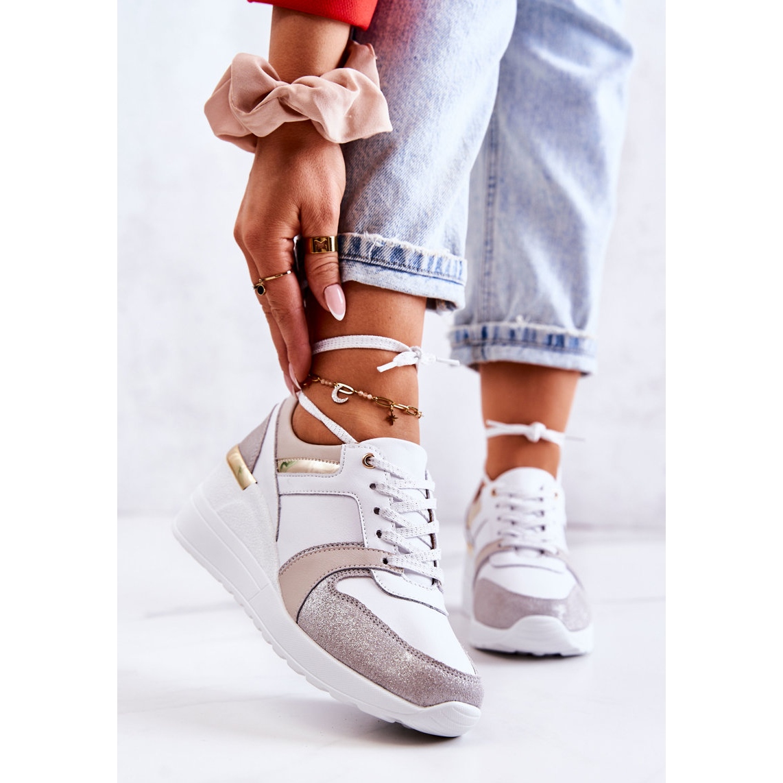 S.Barski S.Barski Sapatos esportivos de couro em uma cunha branca e cinza Rayana branco