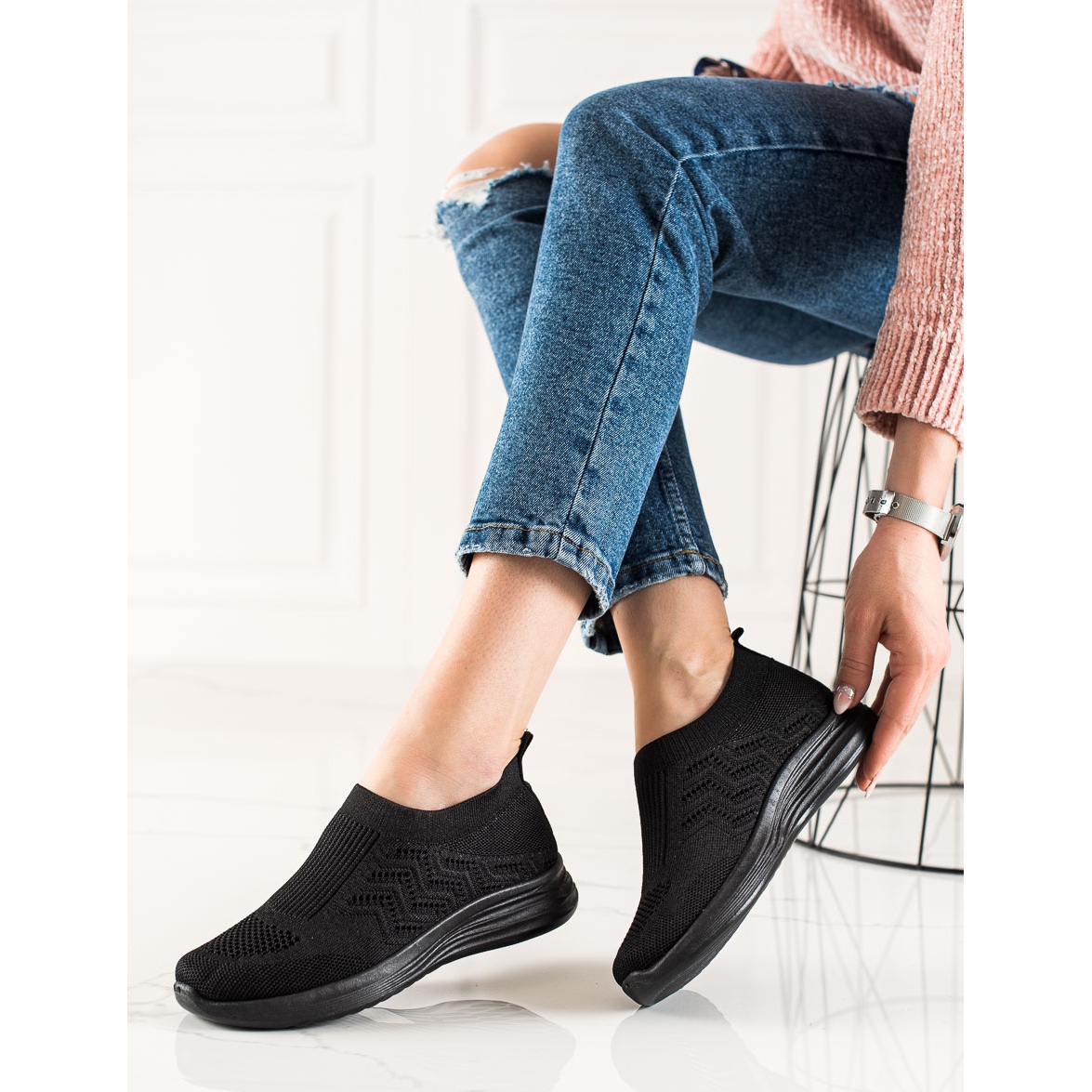 Os calçados são confeccionados com materiais 100% têxteis de alta qualidade, o que os torna leves e respiráveis. O padrão vazado não só lhes confere um visual moderno, mas também permite a livre circulação de ar, o que é extremamente importante nos dias mais quentes. Um salto macio e embutido garante conforto durante o uso, e a ponta redonda dá espaço suficiente aos pés.