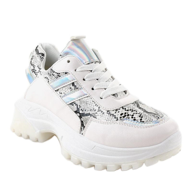 Apresentamos o calçado desportivo branco e elegante 690051, que impressiona pelos detalhes únicos e conforto de utilização. Esses calçados esportivos femininos de outra marca combinam design moderno com acabamento de alta qualidade. Feitos de material semelhante ao couro, com estilo de pele de cobra, oferecem um visual único que complementa perfeitamente qualquer estilo esportivo.