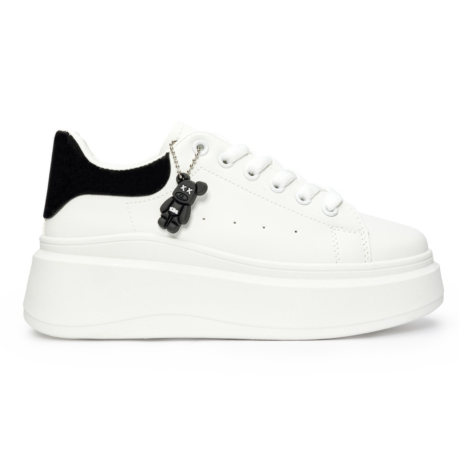 Esses sapatos são caracterizados por couro ecológico, que, combinado com um material interno têxtil, cria um ambiente ideal para o seu pé. Um nariz redondo e um fecho atado lhes dão um personagem esportivo, e detalhes em pretos sutis fazem com que esse modelo se encaixe nas tendências atuais da moda.