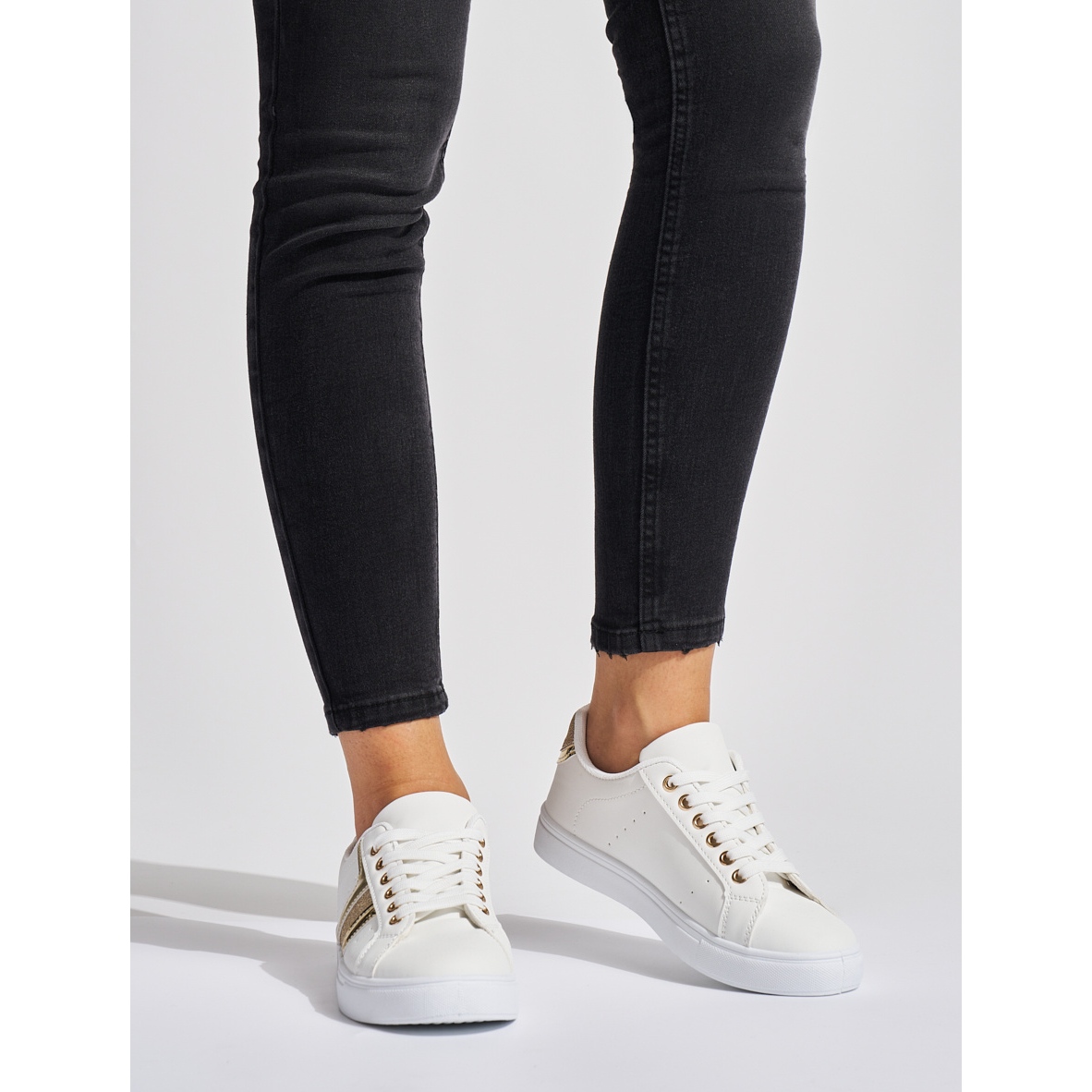 Detalhes: Sapatos esportivos femininos brancos