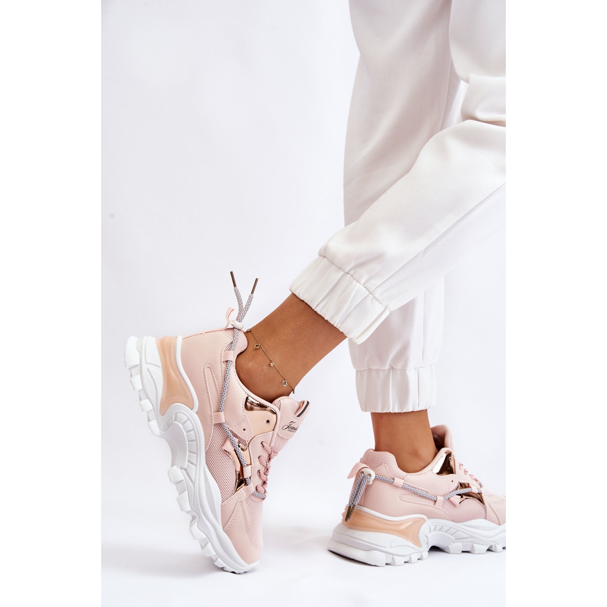 Detalhes: PA1 Sapatos esportivos femininos com cadarço na plataforma rosa Minea