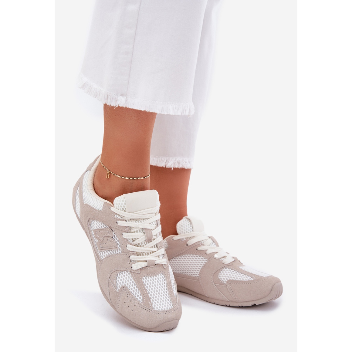 ** Sapatos esportivos femininos com camurça ecológica branca e bege **