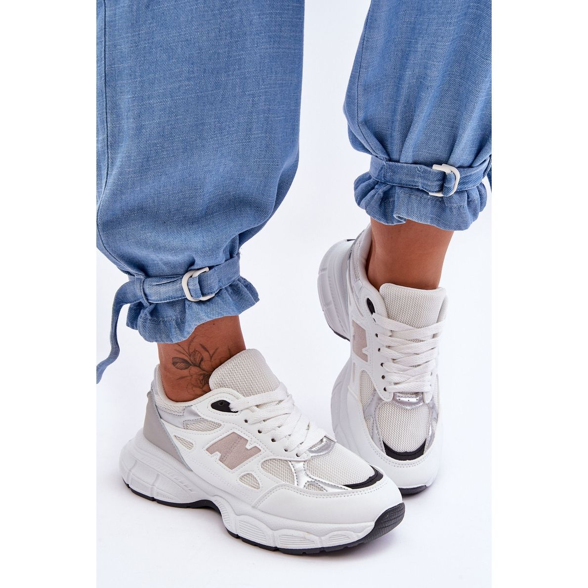 - Estilo: acabamento branco e cinza com uma sola preta- universal e elegante.