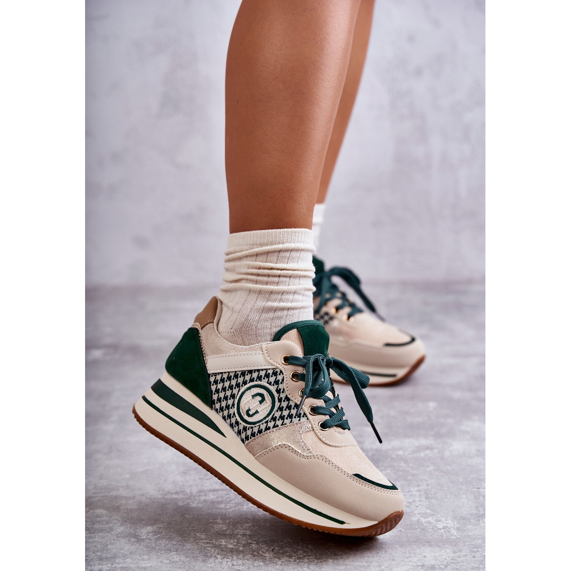 Detalhes: FB2 Sapatos esportivos femininos da moda em cunha bege-verde Aronne
