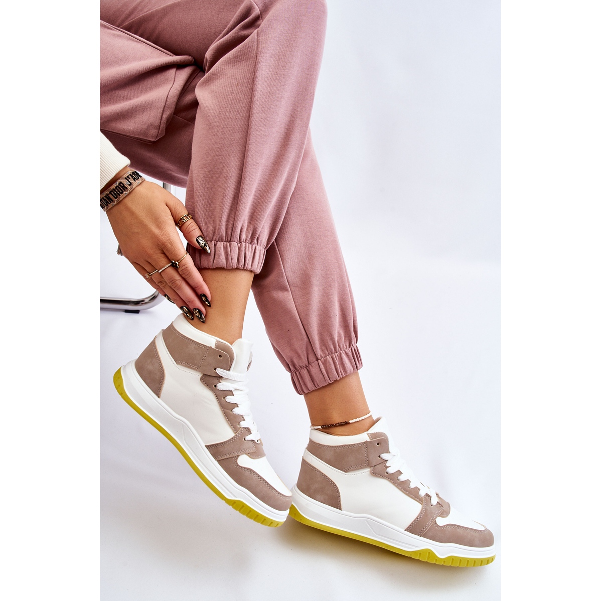 Detalhes: BM Sapatos esportivos femininos de cano alto branco e bege Rumor