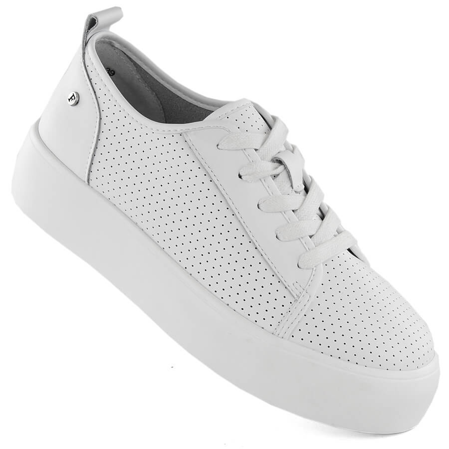 Detalhes: Sapatos esportivos femininos de couro, branco Filippo DP6116