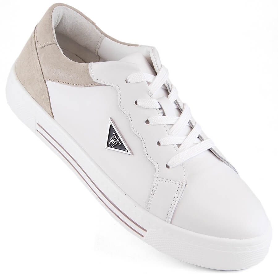 Detalhes: Sapatos esportivos femininos de couro com atacadores, branco, Filippo DP6049