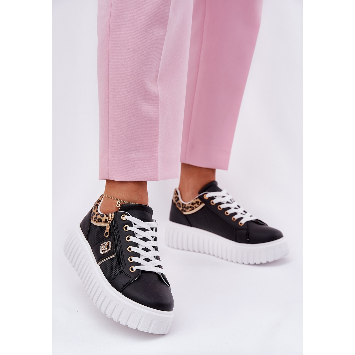 Detalhes: Sapatos esportivos femininos em plataforma com impressão de leopardo de couro ECO preto