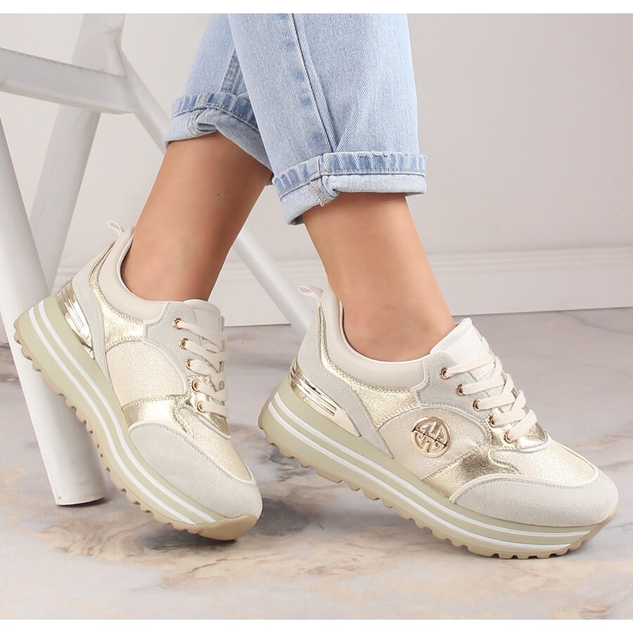 Potocki Sapatos esportivos femininos na plataforma dourada Potocki SZ12025 dourado