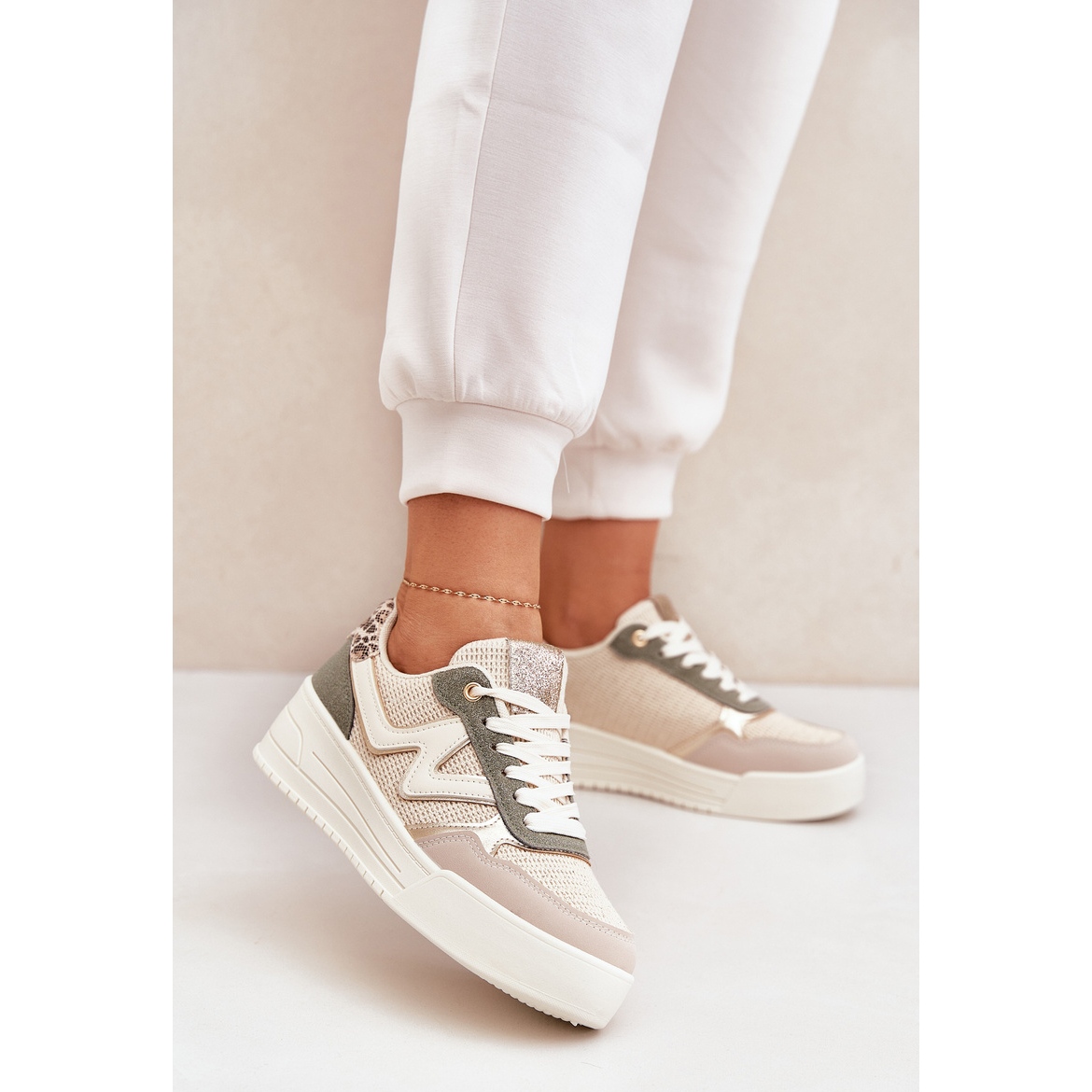 Apresentamos sapatos esportivos femininos elegantes e elegantes na plataforma na cor imprimorada de leopardo verde original. Esses calçados elegantes, feitos de couro e tecido ecológico de alta qualidade, combinam conforto e design moderno, ideais para mulheres que valorizam o conforto e os detalhes da moda.