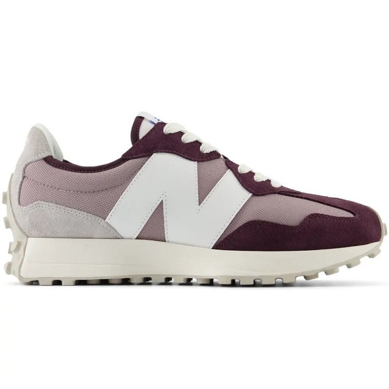 Detalhes: Sapatos esportivos femininos New Balance 327 tênis roxos de camurça (U327cf)