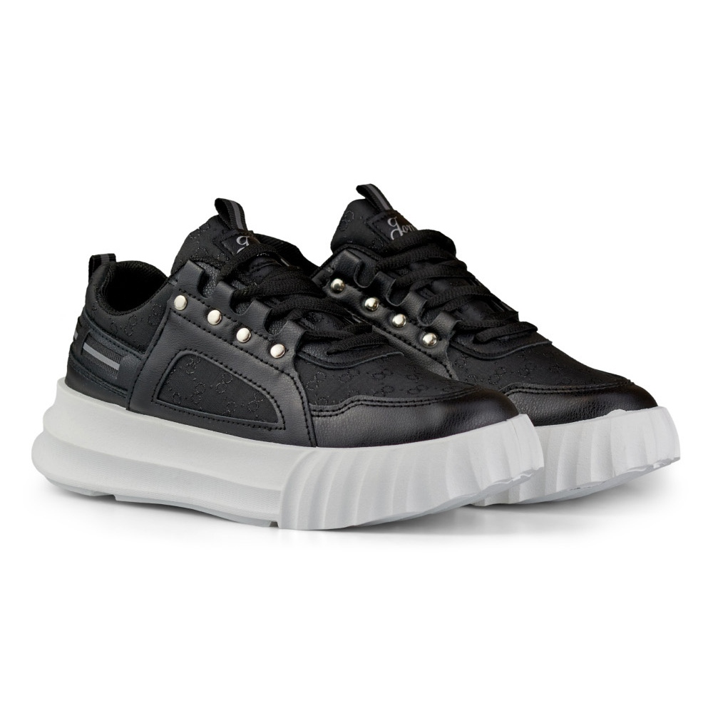 Detalhes: Sapatos esportivos femininos pretos com sola branca