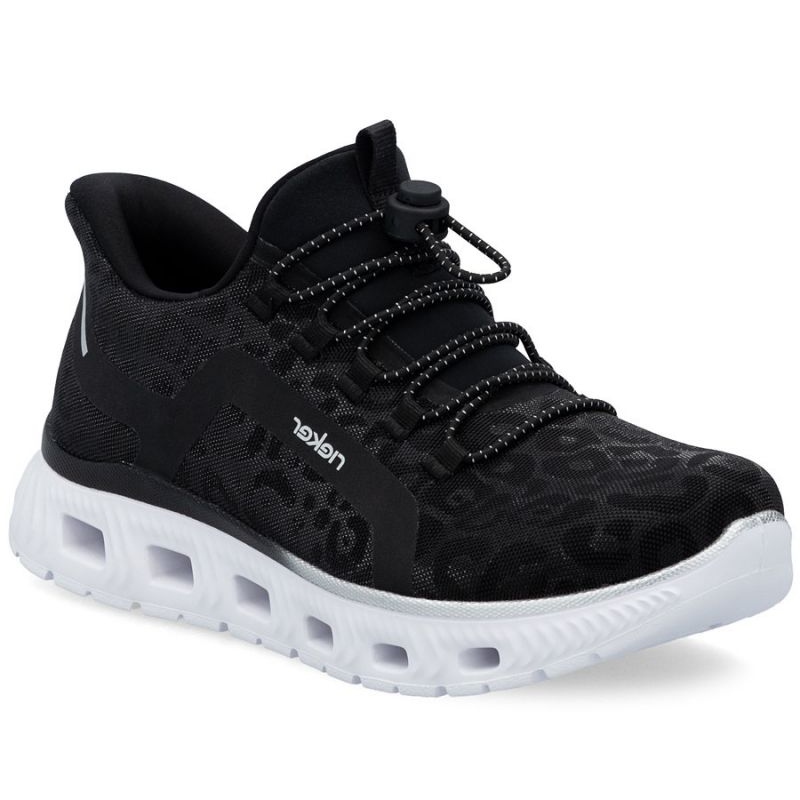 Detalhes: Sapatos esportivos femininos Rieker M6066-01 Black preto