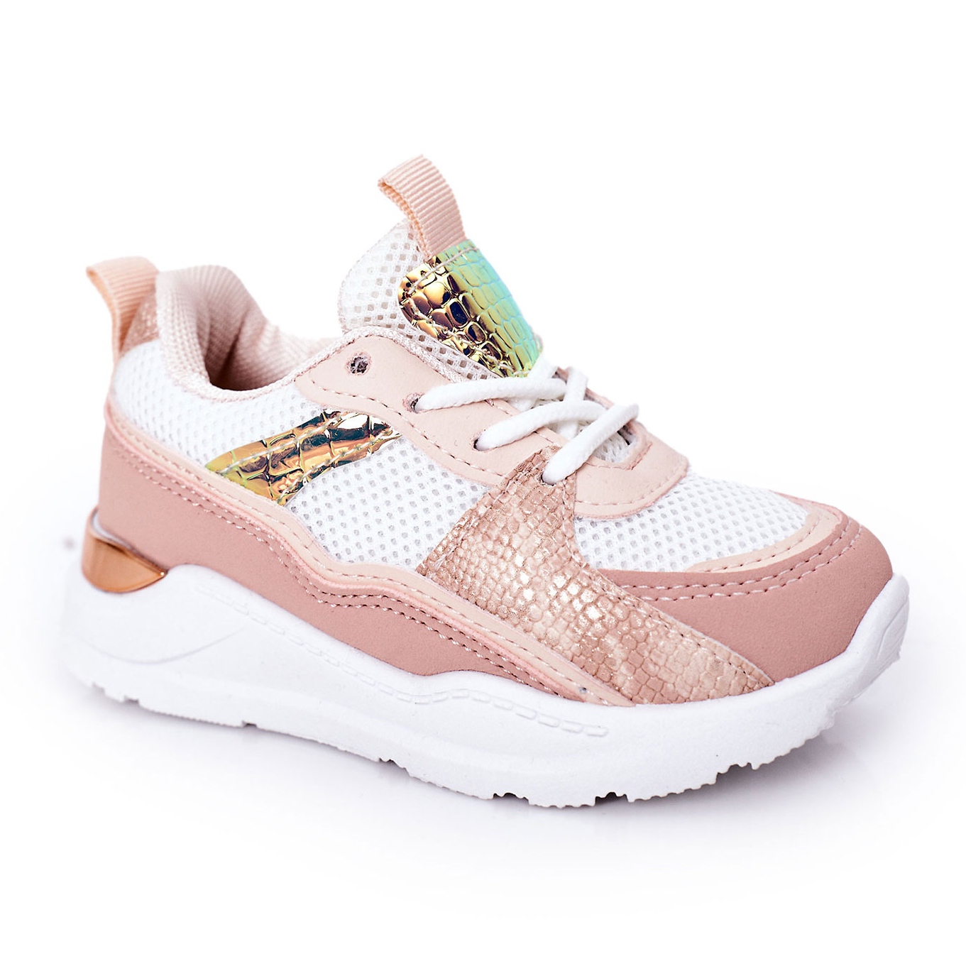 Tênis elegantes para meninas que combinam uma aparência elegante com conforto diário. A combinação única de materiais fornece aos sapatos leveza e personagem original, e a palmilha de material suave se importa com conveniência durante o desgaste divertido e completo.