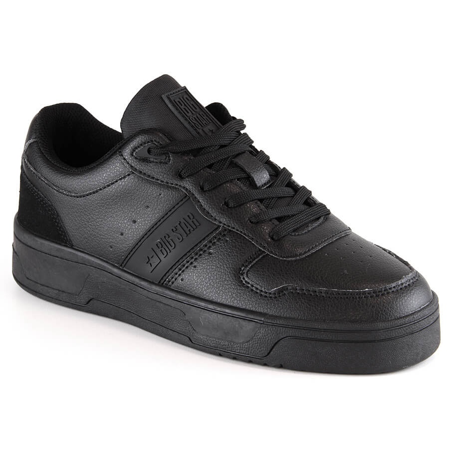 Os tênis modernos e pretos Big Star KK274258 são calçados práticos e elegantes criados para uso informal diário. Baixa, com nariz redondo e fixador, combine conforto com um design atemporal - ótimo na primavera e no outono, para estilos urbanos casuais.