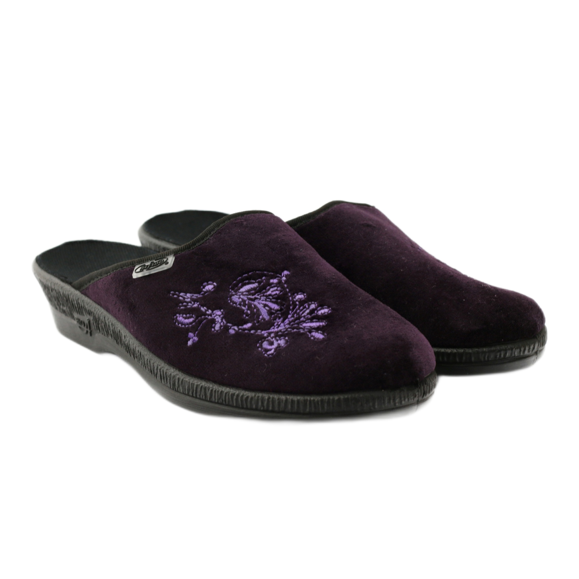 Estes chinelos distinguem-se pela sua bela cor roxa e padrão floral, o que os torna uma escolha perfeita para mulheres que valorizam o estilo moderno. A ponta redonda acrescenta classe e a altura do salto de 3 cm proporciona suporte adicional ao caminhar.