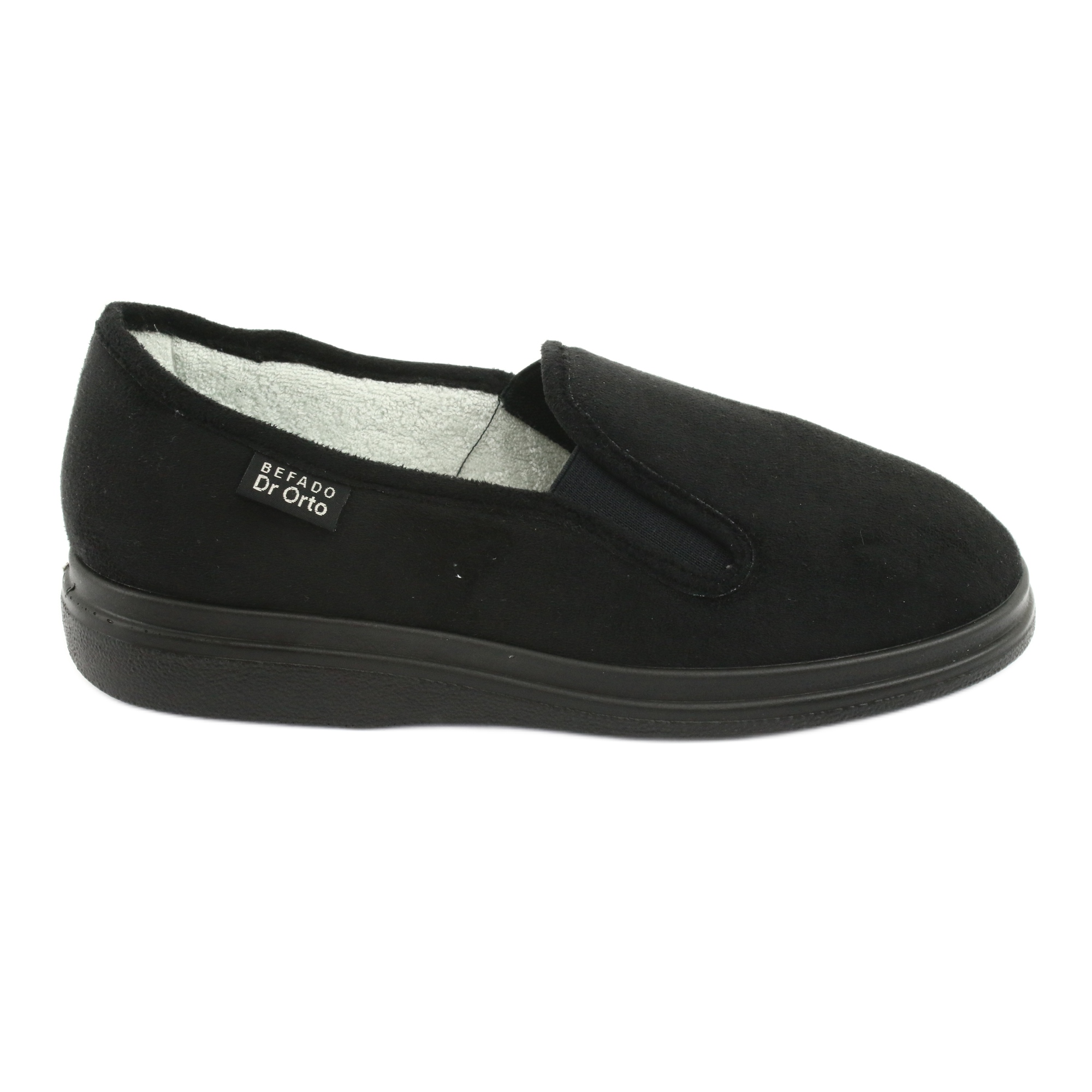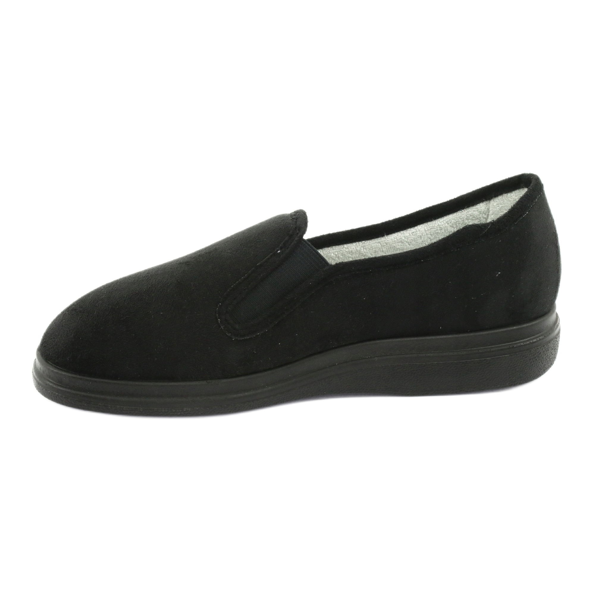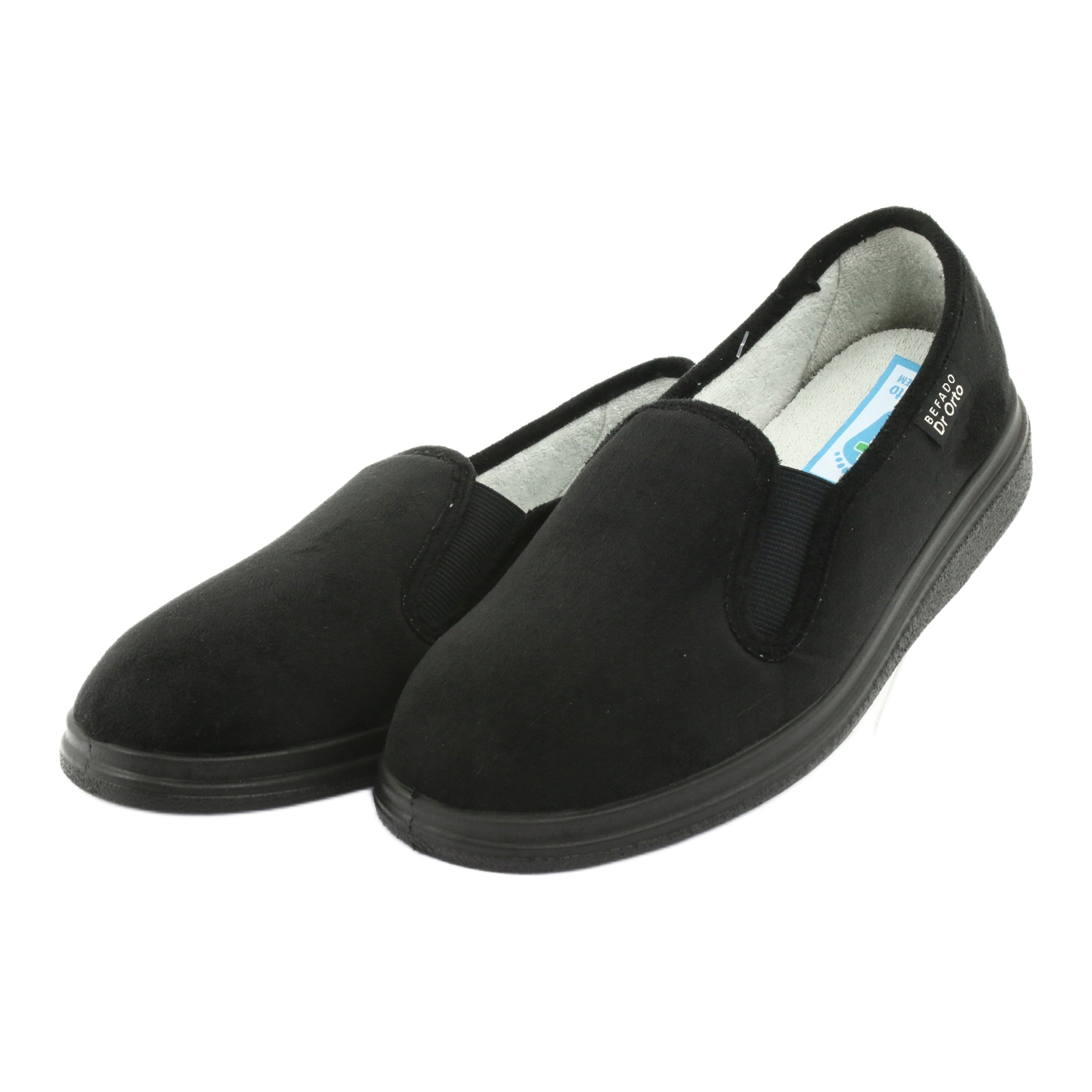 BEFADO 991D002 - Slippers femininos leves e confortáveis de preto, criados para obter o máximo conforto sensível e exigindo o máximo. O modelo com alto gordura fornece um nariz largo e alto, graças ao qual os dedos estão dispostos livremente, e o calçado não comprime nem com os pés inchados. O número de costura e articulações dentro do sapato foi minimizado, o que reduz o risco de abrasões e irritação - uma solução também recomendada para pessoas com pé diabético.