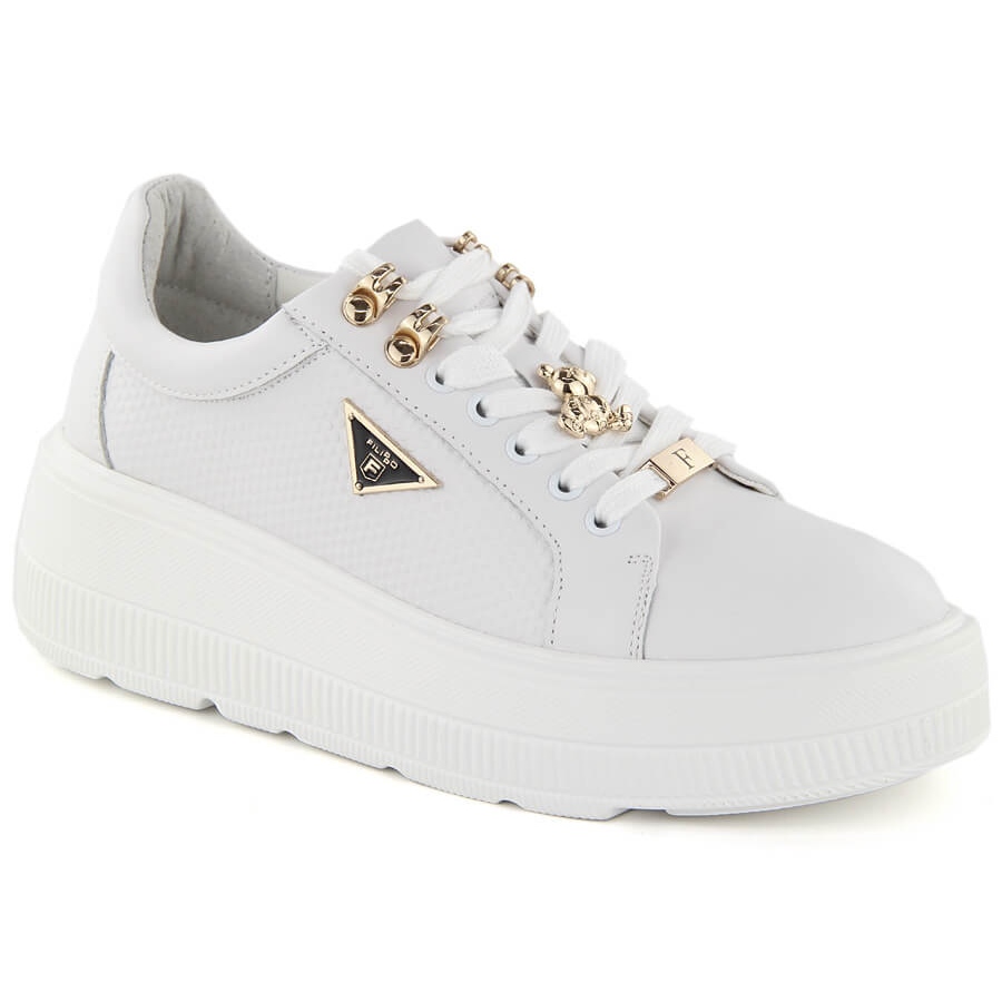 Detalhes: Sapatos femininos brancos de couro na plataforma Filippo DP6382
