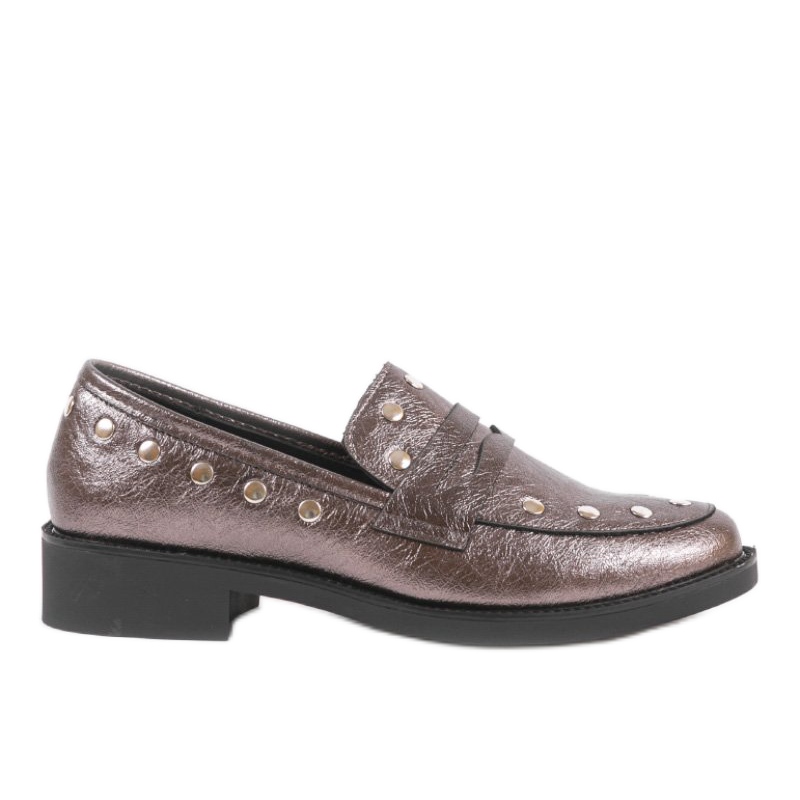 Apresentamos sapatos femininos cinza C18-6297, que combinam elegância e conforto. Estes sapatos slip-on, feitos de material semelhante a couro de alta qualidade, combinam perfeitamente com as tendências da moda atual. As inserções decorativas redondas de metal conferem-lhes originalidade e brilho sutil, tornando-os um complemento perfeito para muitos estilos.