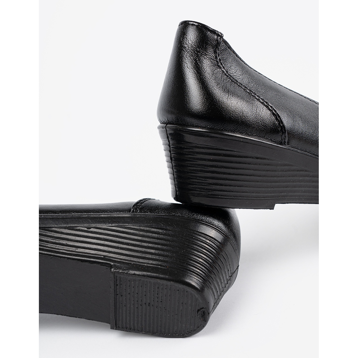 Uma cunha de 5 cm de altura significa que esses sapatos não apenas adicionam alguns centímetros de altura, mas também garantem estabilidade durante cada etapa. Graças à fixação construída, os sapatos se adaptam perfeitamente à forma do pé, e o nariz redondo lhes dá um personagem sutil e romântico. O fecho de deslizamento permite que você use rapidamente e decolte, o que é ideal para todas as mulheres ocupadas.