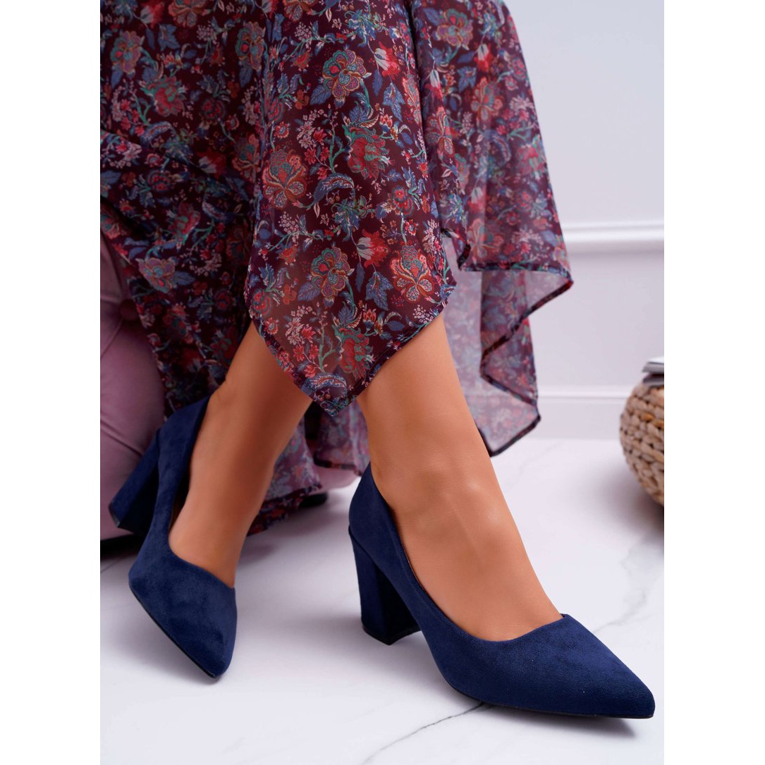 FRJ Sapatos femininos com salto em camurça azul marinho Femmini azul-marinho