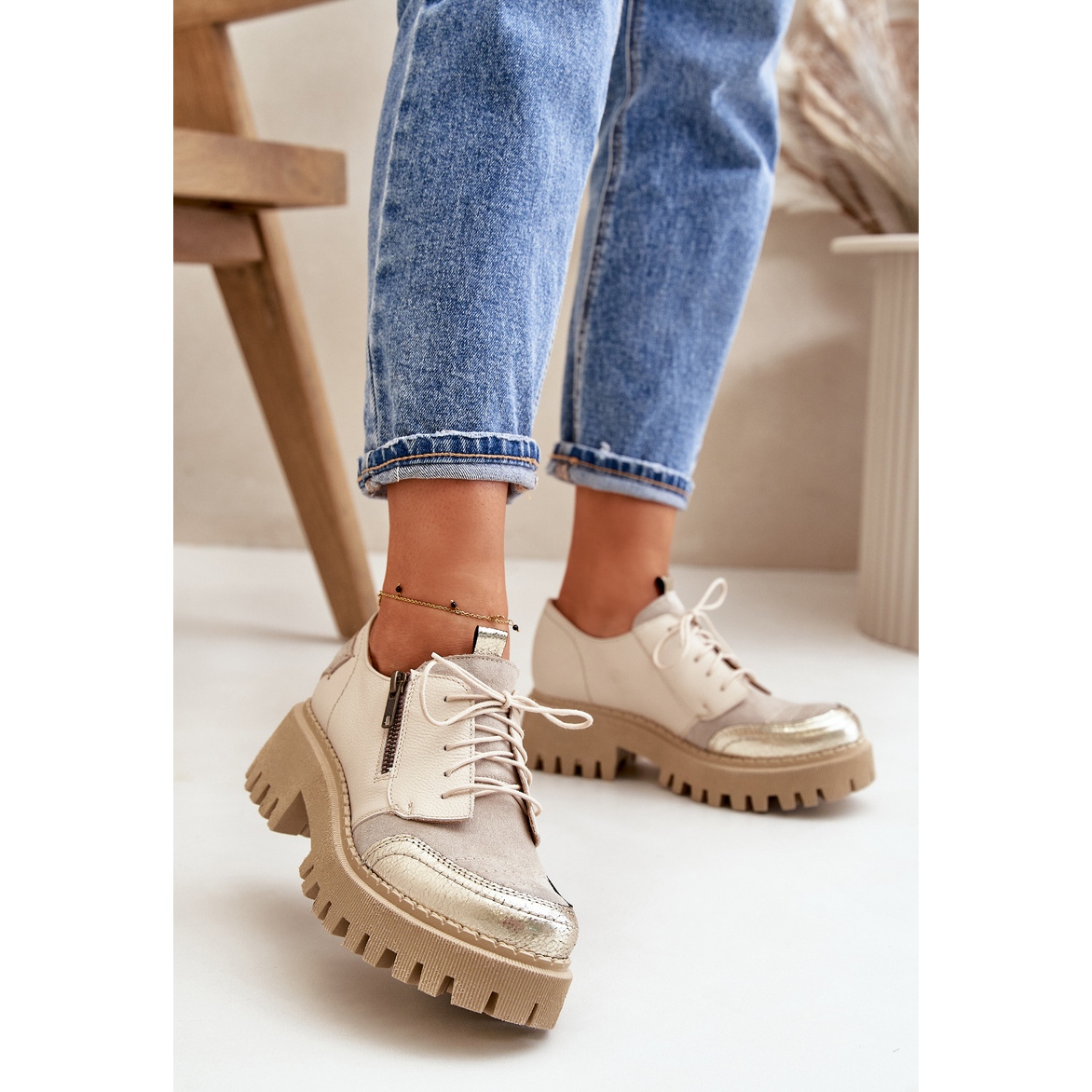 Detalhes: Sapatos femininos confeccionados em couro natural bege Maciejka 06177-04