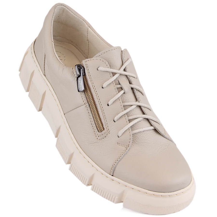 Detalhes: Sapatos femininos confortáveis de couro com plataforma crua Helios 413.10 bege