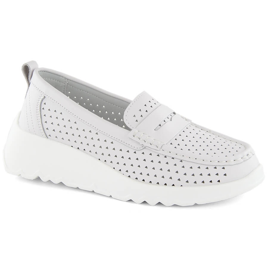 S.Barski Sapatos femininos confortáveis de couro perfurado, branco S.Barski LR509