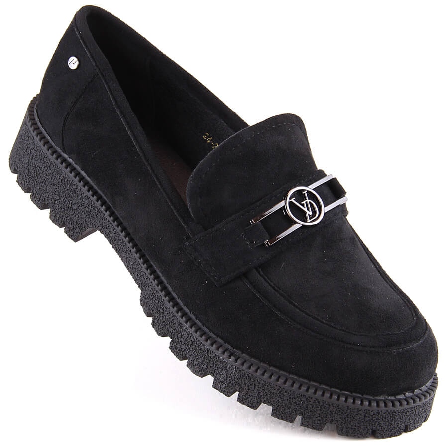 Detalhes: Sapatos femininos de camurça, mocassins pretos Potocki YQ21047