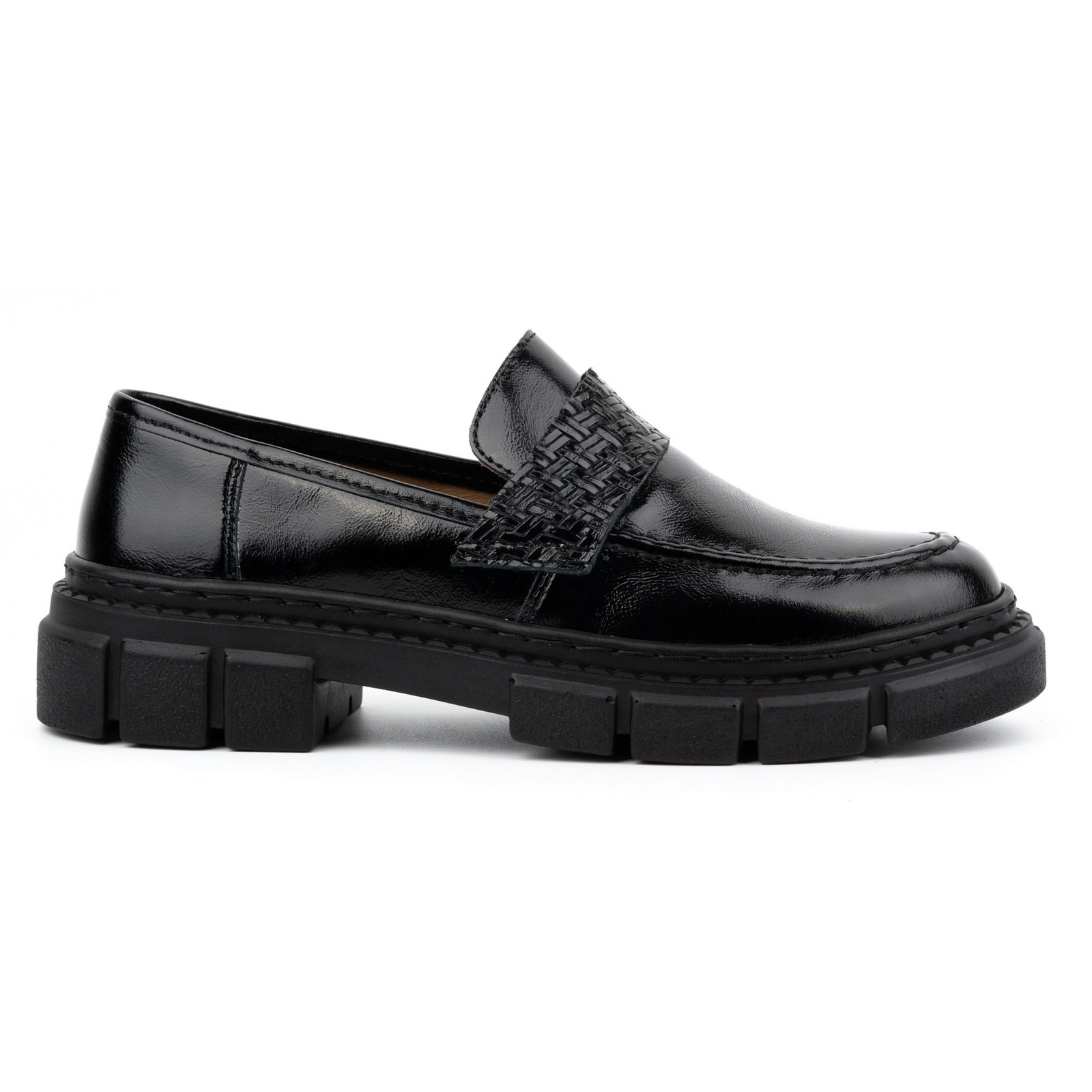Sapatos baixos de couro feminino de Wasak 0706 - preto, em uma sola grossa