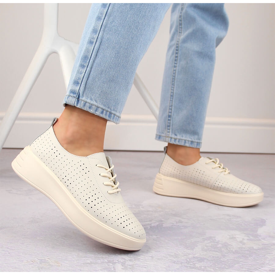 Os sapatos estão disponíveis em uma linda cor bege, que cabe perfeitamente em qualquer estilo de primavera, verão ou outono. O corte casual único torna-os perfeitos tanto como elemento do look do dia a dia como em combinações mais elegantes. A palmilha em couro natural garante conforto durante todo o dia e o forro ecológico agrega conforto adequado.