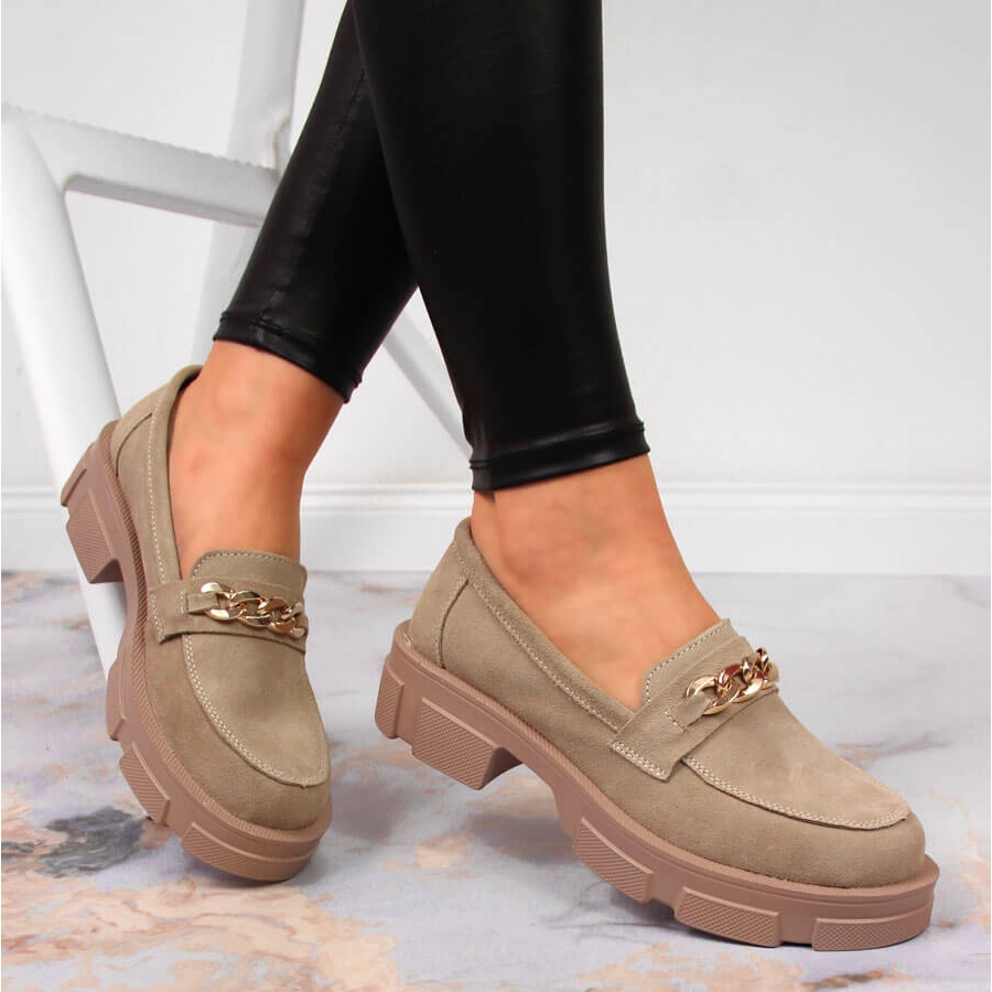 O charme destes sapatos é enfatizado por uma corrente decorativa brilhante que acrescenta classe e exclusividade. Graças a este destaque, os sapatos vão se destacar significativamente de outros modelos mais convencionais. O corte é desenhado em estilo casual, pensando no outono e na primavera.