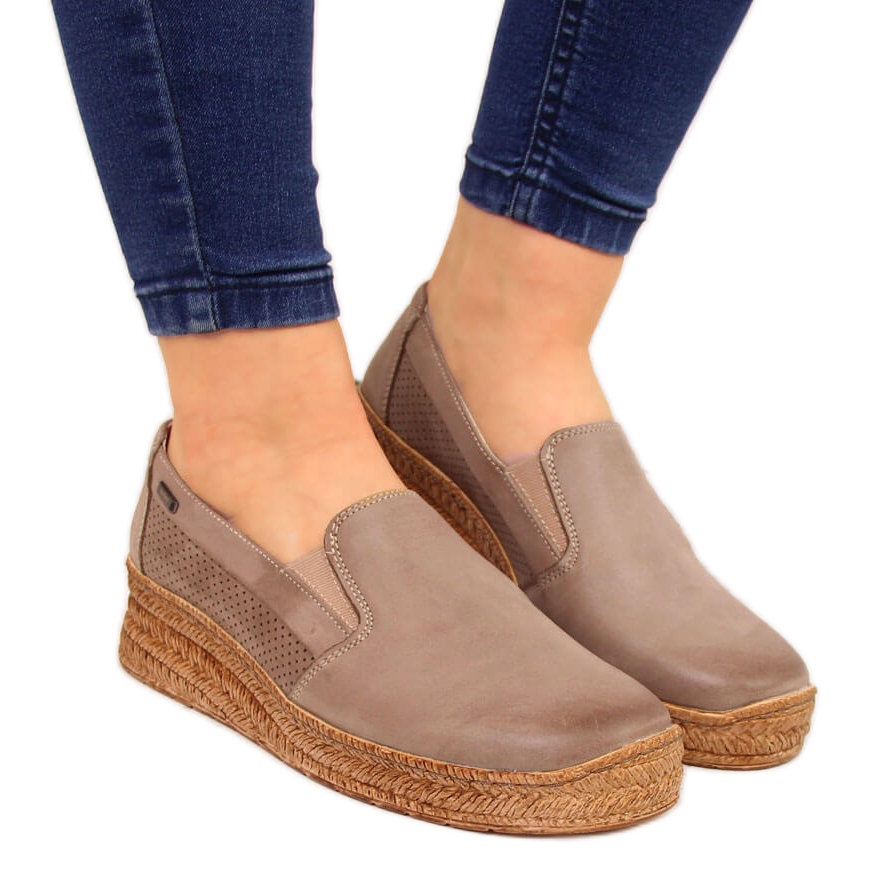 Detalhes: Sapatos femininos de couro com cunha bege Helios 350