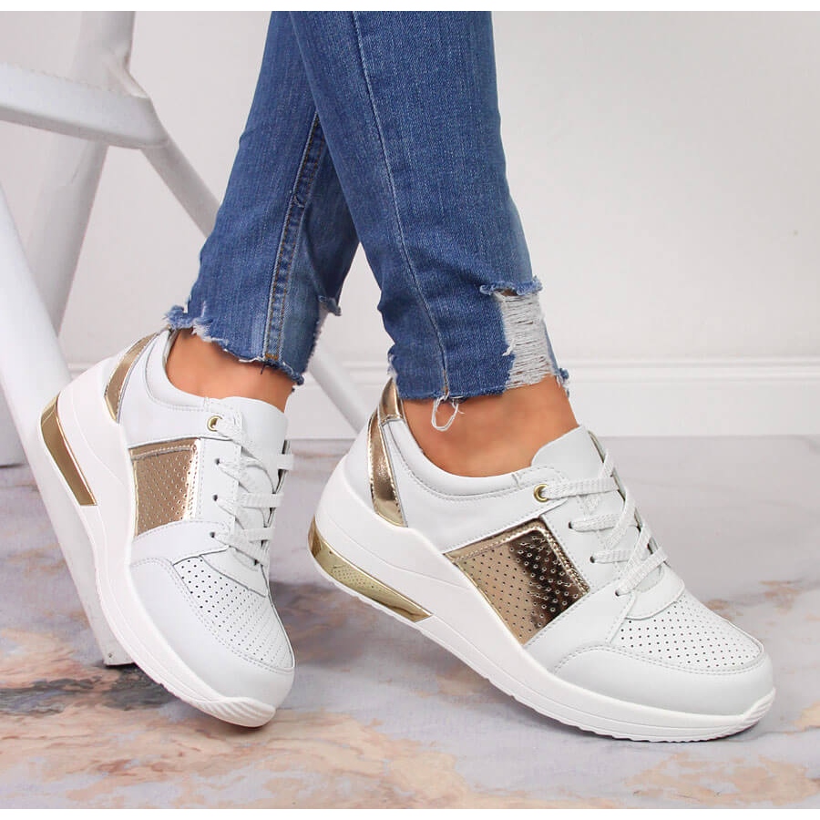 Detalhes: S.Barski Sapatos femininos de couro com cunha, S. Barski branco