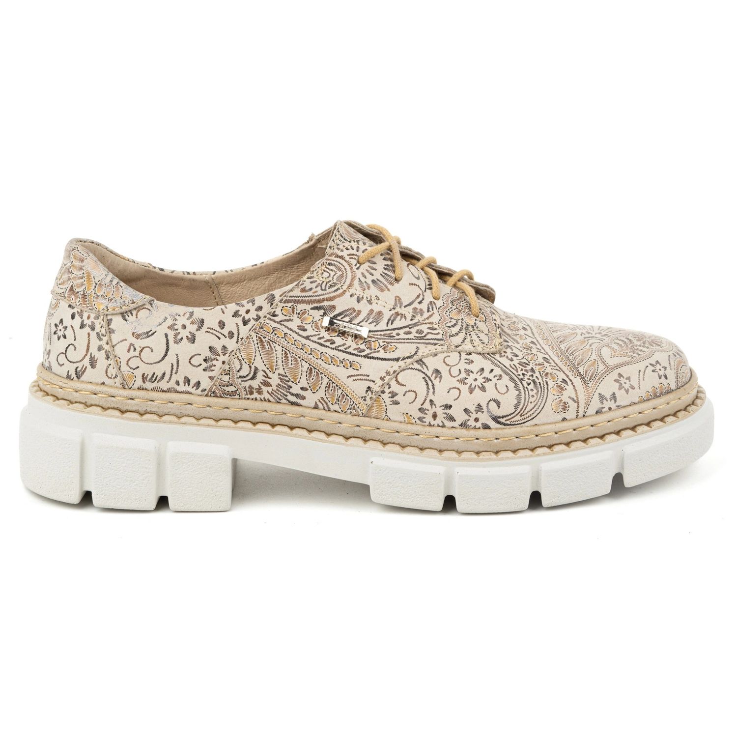 Detalhes: Olivier Sapatos femininos de couro com sola grossa, flores 1134, bege